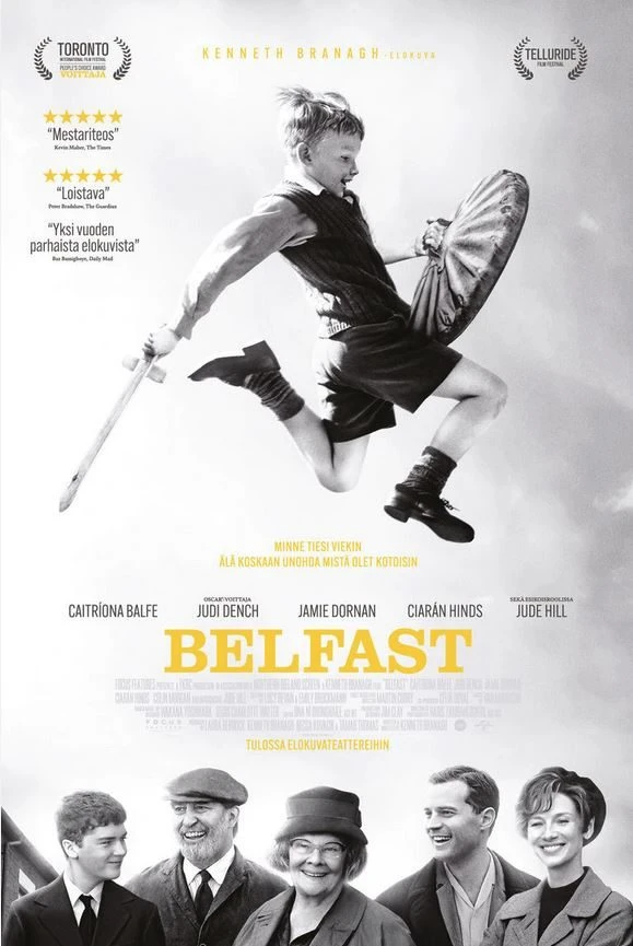 Oscar®-ehdokas Kenneth Branaghin ohjaama ja valovoimaisen näyttelijäkaartin tähdittämä Belfast on henkilökohtainen tarina muistojen voimasta täynnä iloa. Elokuva sijoittuu 1960-luvun lopun Pohjois-Irlantiin. Tapahtumien keskiössä on Buddy, koulupoika teini-iän kynnyksellä. Hänen elämäänsä kuuluvat rakastava perhe, metkut kavereiden kanssa ja orastava romanssi. Hänen rakas kotikaupunkinsa on kuitenkin päivä päivältä voimistuvien levottomuuksien kourissa, ja perheellä on edessään vaikea valinta. Heidän on päätettävä, jäävätkö he odottamaan, että konflikti menee ohi, vai jättävätkö he kaiken taakseen uuden elämän tähden.