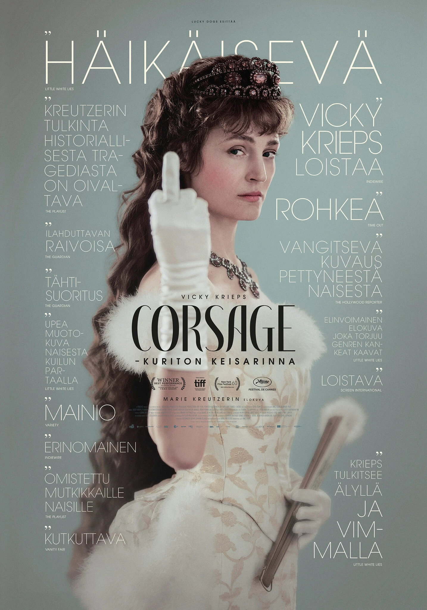 Marie Kreutzerin ylistetty elokuva sai maailmanensi-iltansa Cannesin Un Certain Regard -sarjassa, jossa pääosanesittäjä Vicky Krieps palkittiin parhaana näyttelijättärenä. CORSAGE - KURITON KEISARINNA voitti myös parhaan elokuvan palkinnon Lontoon elokuvajuhlilla ja oli Itävallan lähettiläs talven Oscar-kisaan.
