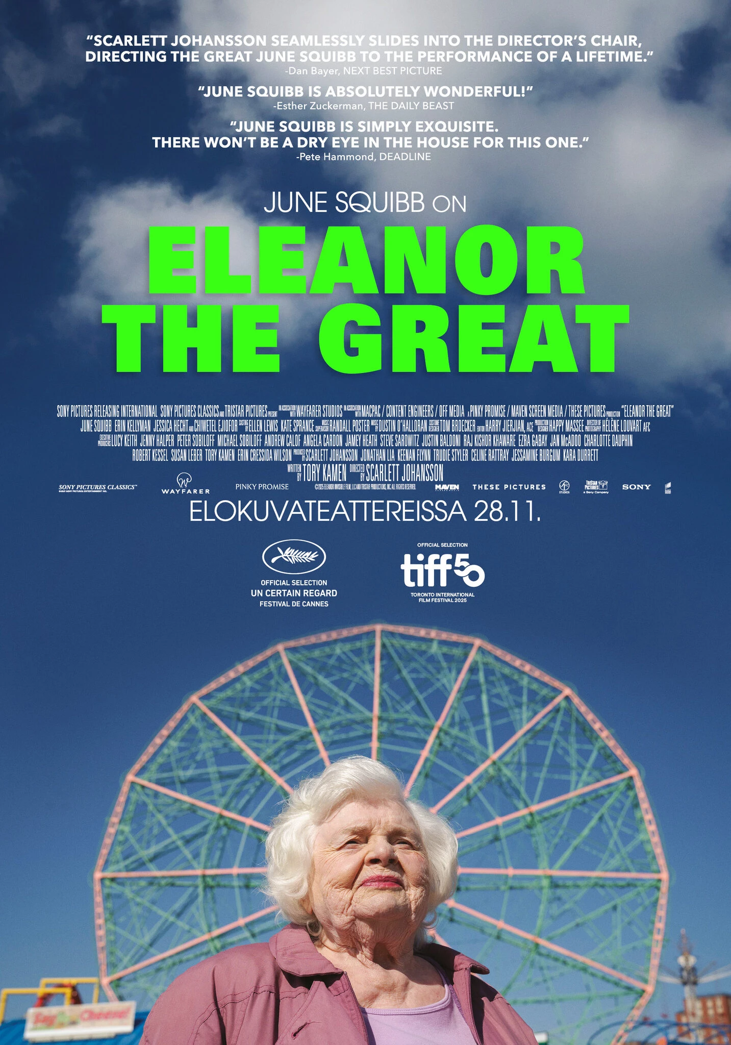 ELEANOR THE GREAT -elokuvassa June Squibb tekee loistokkaan roolisuorituksen, elämäniloisena 94-vuotiaana, jonka kertoma tarina alkaa elää vaarallista omaa elämäänsä.