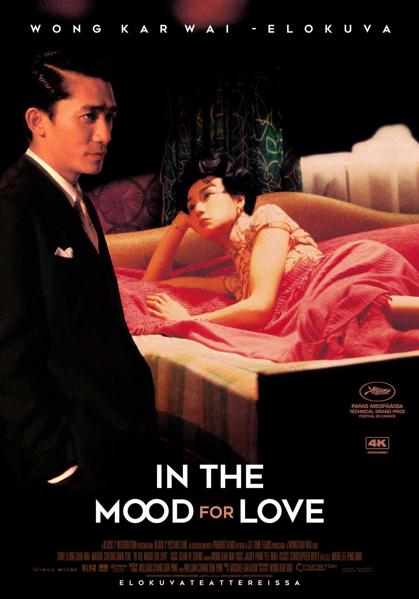 Hong Kong 1962, Chow ja Su muuttavat yhtä aikaa samaan taloon. Molempien puolisot ovat paljon poissa ja he ajautuvat viettämään aikaa keskenään. Chow’n ja Su’n ystävyys tiivistyy kun he havahtuvat epäilemään, että heidän puolisoillaan on suhde keskenään. Chow ja Su päättävät pitää välinsä platonisena, toisin kuin puolisonsa. IN THE MOOD FOR LOVE on kaunis draama kukoistavasta ystävyydestä ja lohdun löytämisestä läheisestä ihmisestä. Se on yksi mestariohjaaja Wong Kar Wain avainteoksista ja se palkittiin mm. vuoden 2000 Cannesin elokuvajuhlilla.