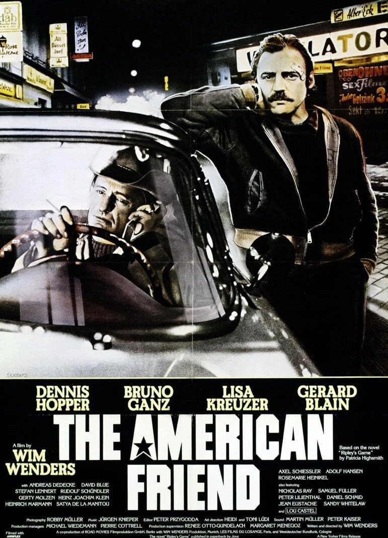 Kulttielokuvaksi noussut “Amerikkalainen ystävä” pohjautuu Patricia Highsmithin romaaniin “Tom Ripley, amerikkalainen ystävä” ja se voitti Saksan kriitikoiden palkinnon vuonna 1977.