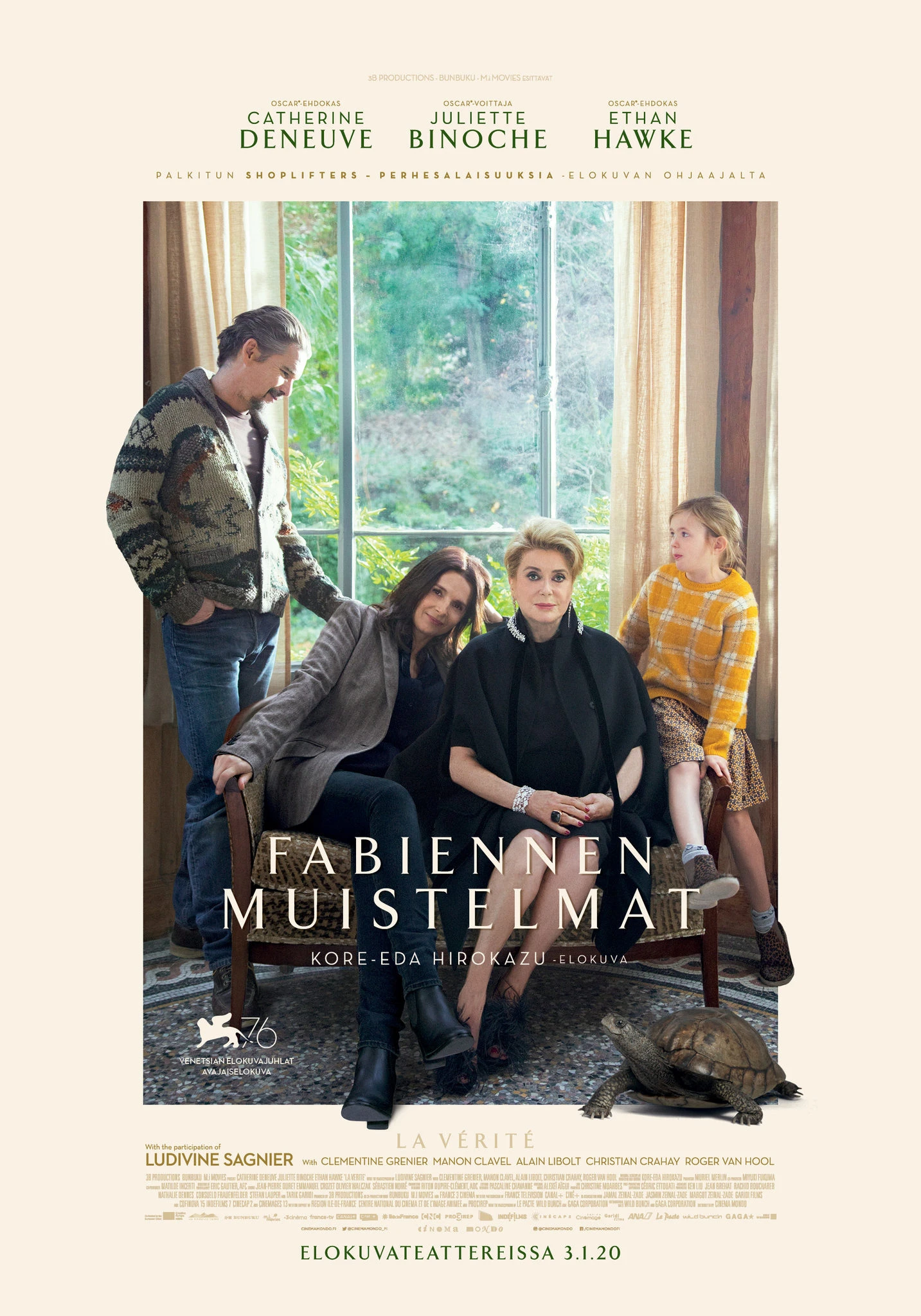 FABIENNEN MUISTELMAT on Shoplifters – perhesalaisuuksia –elokuvan ohjanneen Kore-Eda Hirokazun ensimmäinen Japanin ulkopuolella kuvattu elokuva. Pääosissa nähdään ranskalaisen elokuvan suuret legendat Catherine Deneuve ja Juliette Binoche.