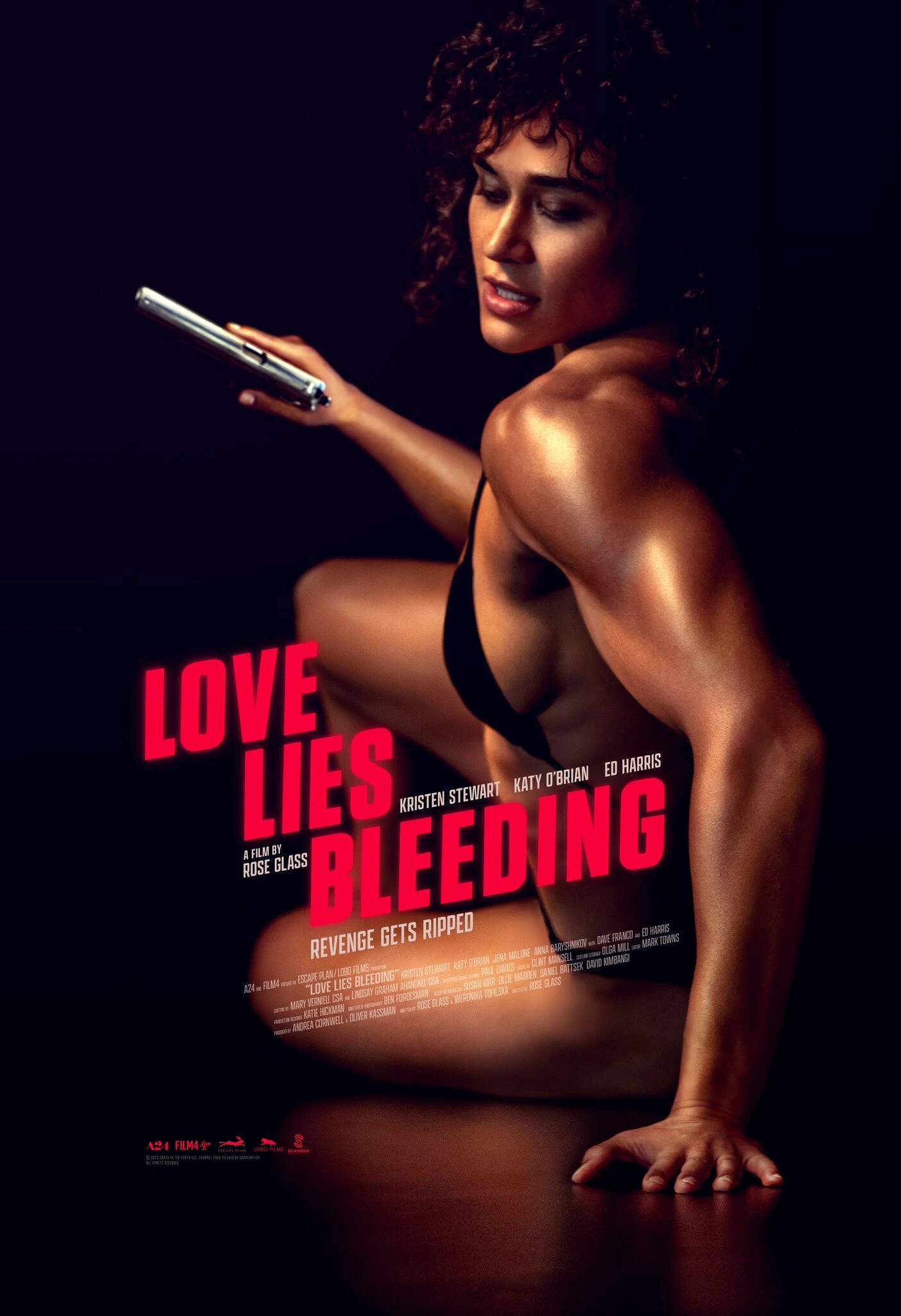 A24-studion ilmiöksi noussut Love Lies Bleeding on äärimmäisen latautunut ja toiminnantäyteinen rakkaustarina, joka sijoittuu nuhjuiseen New Mexicon pikkukaupunkiin vuonna 1989. Vastentahtoinen kuntosalinpyörittäjä Lou (magneettinen Kristen Stewart) tapaa Las Vegasin neon-valoista haaveilevan kehonrakentaja Jackien (uskomaton Katy O'Brian) kämäsellä kuntosalilla kasarimusan lyödessä tahtia taustalla. Verkko alkaa kiristyä Loun rikollisen perheen toimien ympärillä, ja pinnan alla kytenyt konflikti Loun rikollispomoisän (kuumottava Ed Harris) kanssa eskaloituu täysin odottamattomilla tavoilla, sotkien Loun ja Jackien lupaavasti alkaneen yhteisen tulevaisuuden.