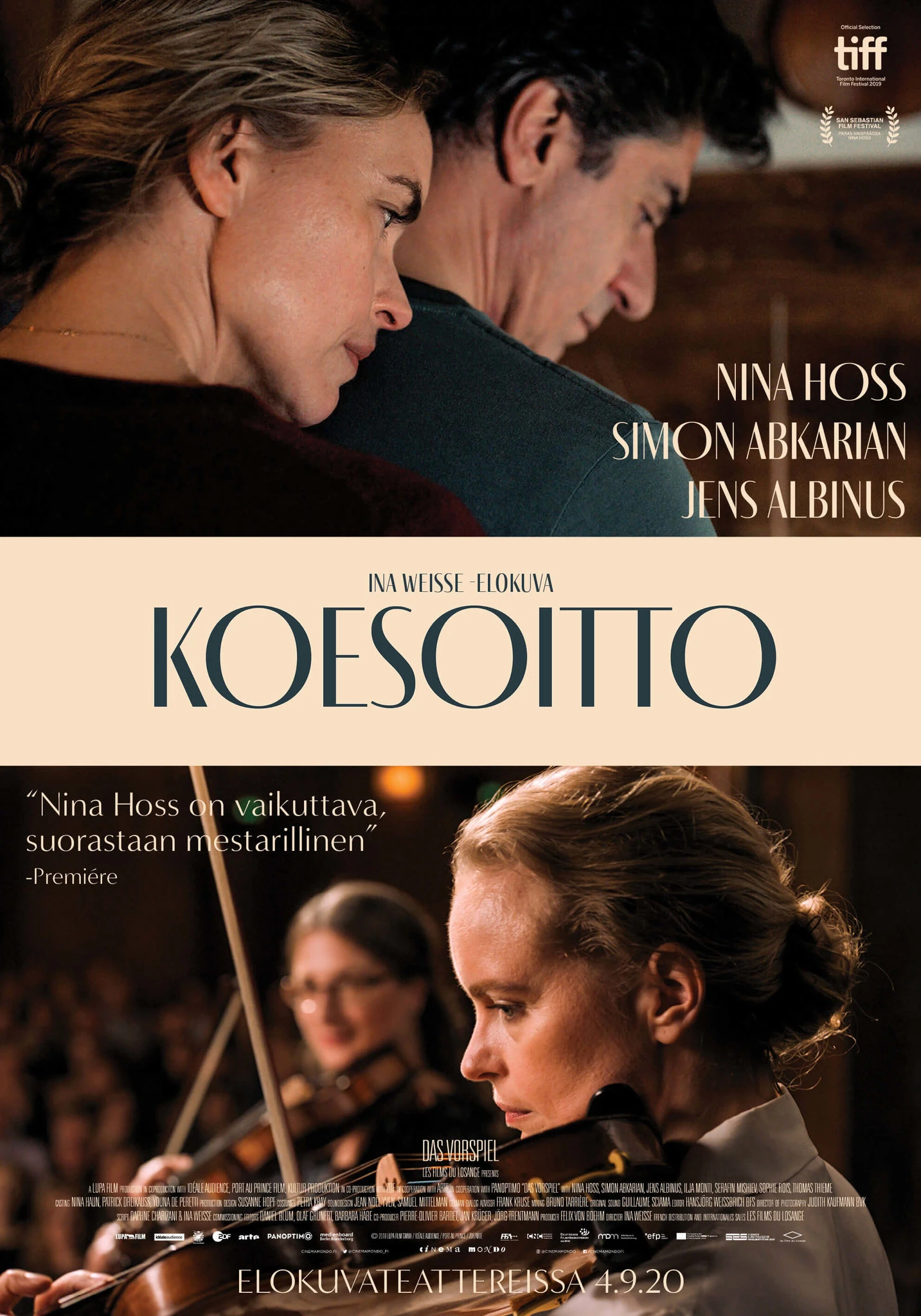 "Nina Hoss on Saksan kansainvälisesti tunnetuimpia nykynäyttelijöitä, ja Koesoittokin on ennen muuta hänen elokuvansa. Annassa kaikki tunteet mylläävät sisällä ja syvällä." -HS